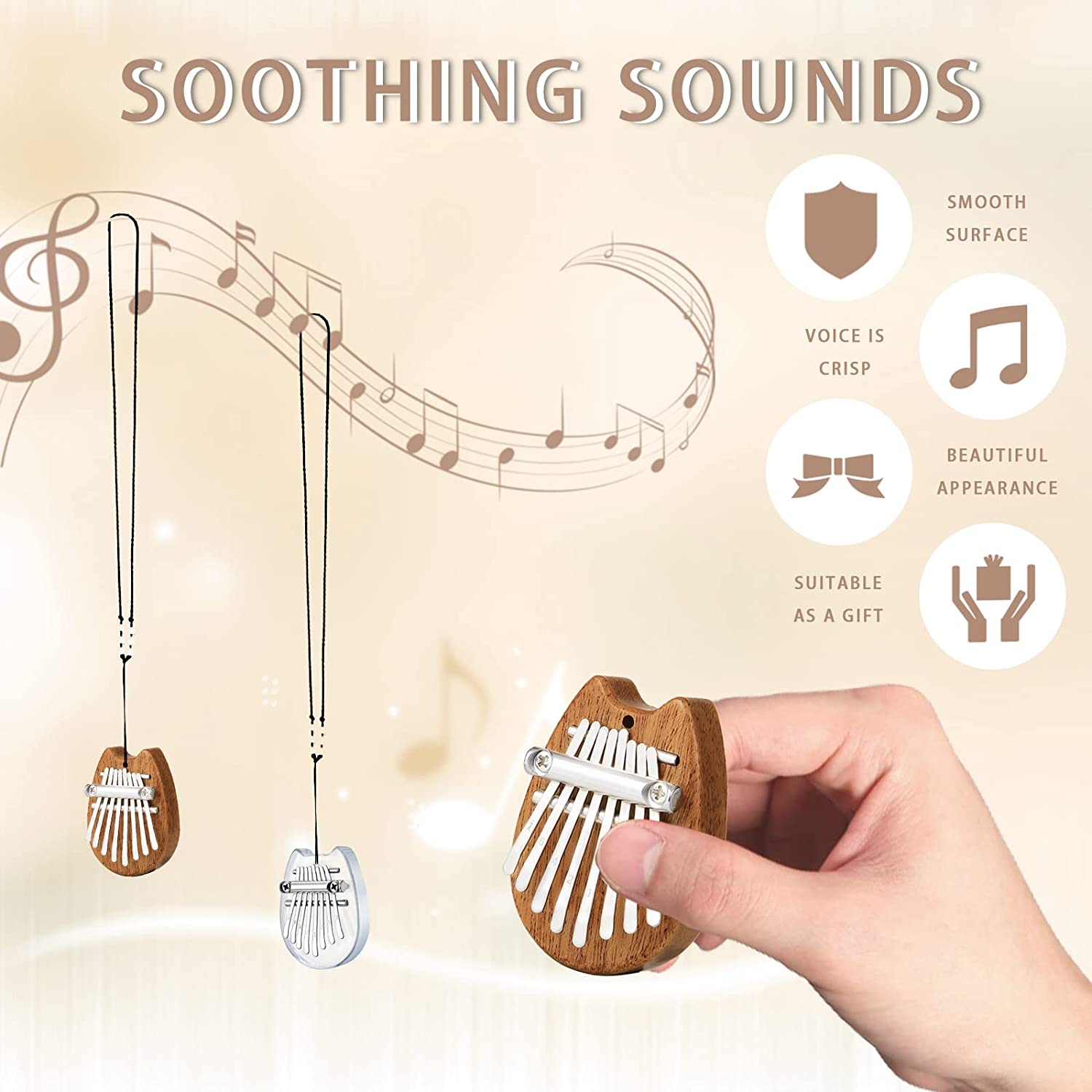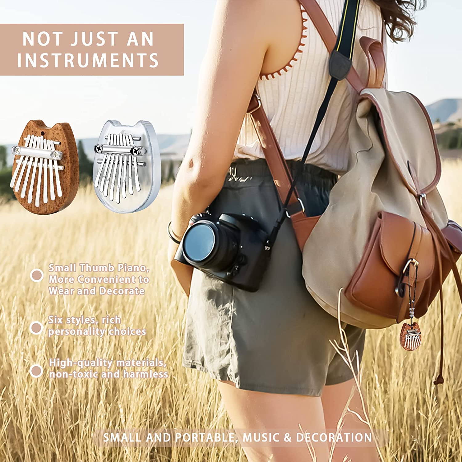 2 Pack Mini Kalimba Thumb Piano 8 Keys,Portable Solid Wood and Acrylic Mbira Finger Piano for Kids and Adults,Pocket Musical Gifts for Beginners w/ Chain