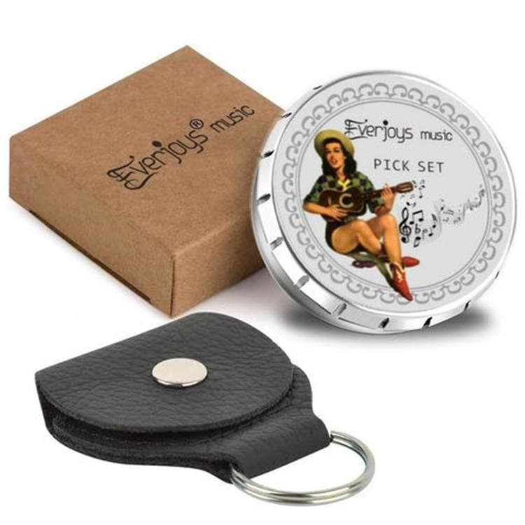 SUnique features: A complete all-in-one set includes 16pack celluloid plectrum and 4pack unique felt picks with extra bonus of leather pick holder & magic tin box. Classic guitar pick shape with unique stylish colorful pattern for comfortable playing, for men women teens guitarist and musicians