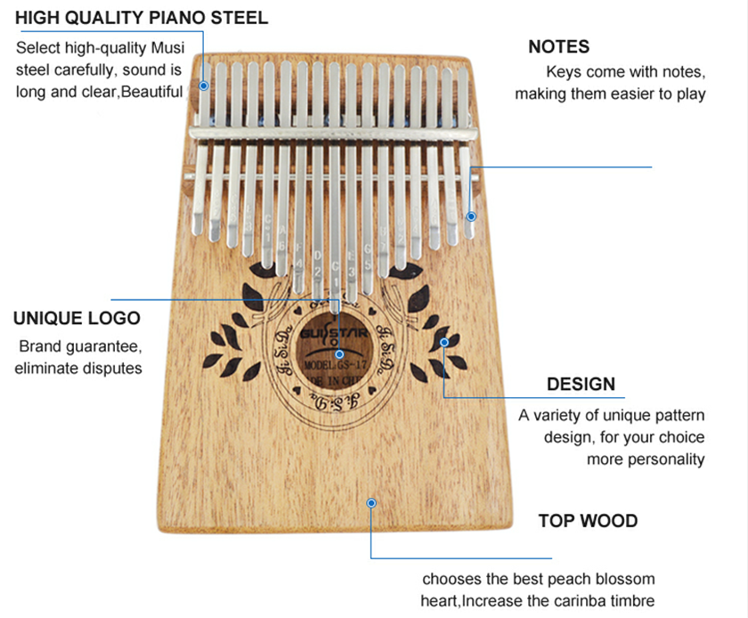 - A COMPREHENSIVE ALL-IN-ONE STARTER'S SET: Our kalimba set includes a 17 key kalimba, how to play songbook, a microfiber polishing cloth, a carrying bag
