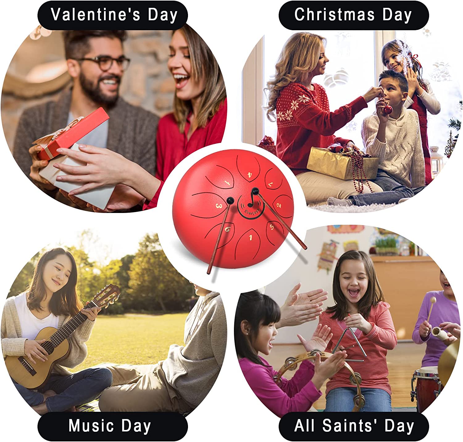 - Superior-quality Craftsmanship: Our steel tongue drum is made of high-alloy and with accurate tune by meticulous cutting. With excellent finished surface, The drum body is full and round, and the drum